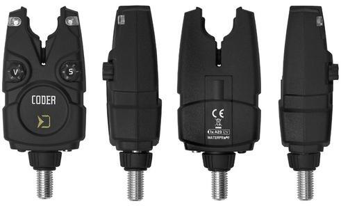 A jelzőt egy LR23A típusú 12V-os elem táplálja, amely kellően hosszú élettartammal rendelkezik. Lemerült akkumulátorra rövid hangjelzéssel figyelmeztet. A "V" kapcsolóval válassza ki az 5. hangerőszint egyikét, beleértve a néma üzemmódot is. Arra is lehetőség van, hogy kiválassza a kívánt hang- és érzékenységi szintet (1-9cm tartományban), amelynek szintén 5 különböző szintje van. A CODER kapásjelző vitathatatlan előnye az a lehetőség, hogy a jelző LED dióda 7. színéből választhatunk. Mindenki kiválasztja a kedvencét, és ha változtatásra vágyik, egyszerűen választhat másik színt az utasításoknak megfelelően. Ejtős kapásra másik hang figyelmeztet, a kapásjelző LED minden kapás után 15 másodpercig világít. Az alsó részben található egy bemenet 2,5 mm-es jack a fényjelző csatlakoztatásához. Éjszakai horgászat közben a helyzetdióda is bekapcsolható.